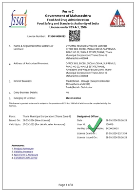 At Dynamic Remedies, we take pride in our state-of-the-art manufacturing facility that adheres to stringent Good Manufacturing Practices (GMP) and is approved by the Food and Drug Administration (FDA). Our commitment to quality is reflected in our ISO 9001 certification, ensuring that every product undergoes rigorous testing and scrutiny before reaching the market. With the expertise of our dedicated Research and Development team, we continuously innovate and formulate a diverse range of Ayurvedic, Herbal, Nutraceuticals, and Cosmeceuticals products.